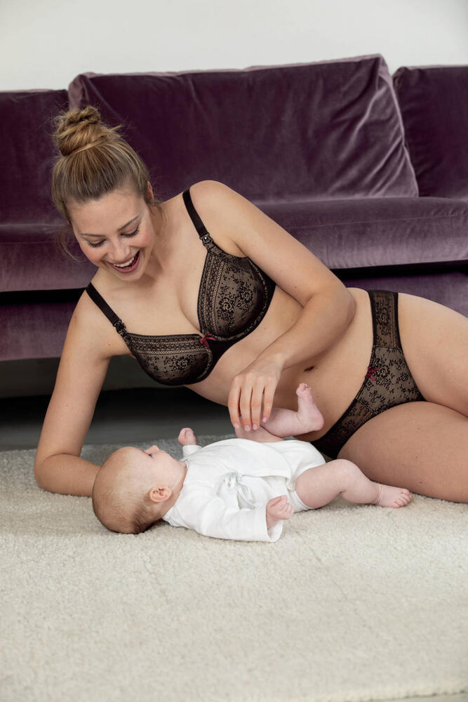 Panties with lace and lined front in skin tone, part of transparent behind. Leg opening with Clean Cut. Composition: 75% Nylon, 25% Spandex. (ler mais)