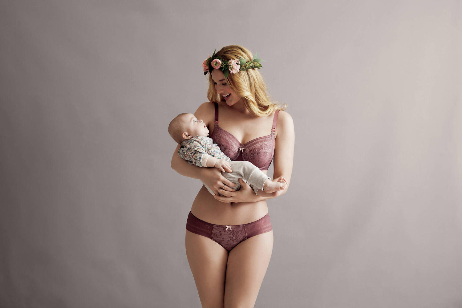 Panties with lace and lined front in skin tone, part of transparent behind.