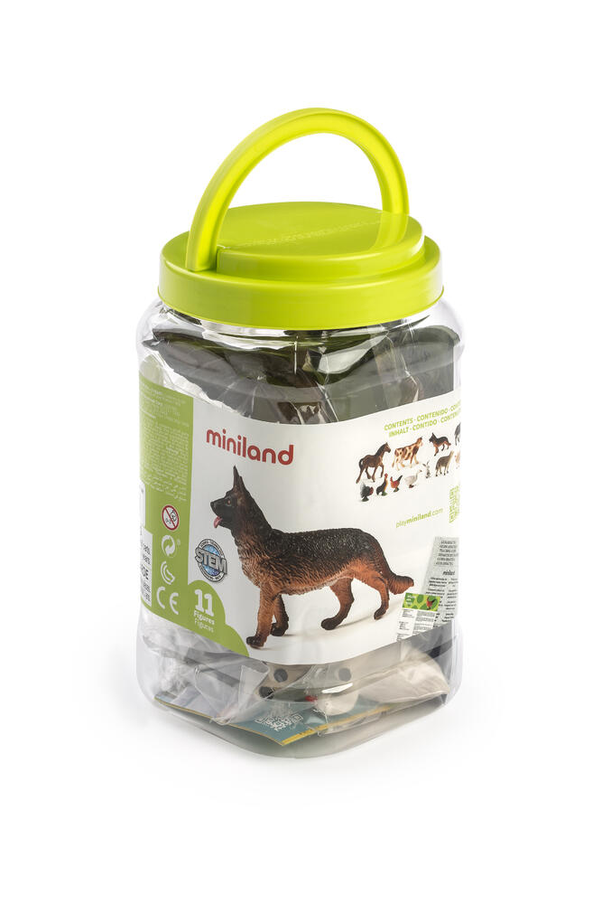 Incluye 11 figuras en un cubo con asa y una guía didáctica.