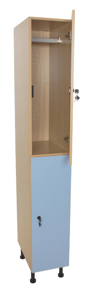 Conjunto taquillas individuales en la columna con dos puertas y estante para cada armario, hechas de melamina de haya de 19 mm de espesor, de nuevo 10 mm, 2 mm esquinas de PVC y patas niveladoras de PVC... (ler mais)
