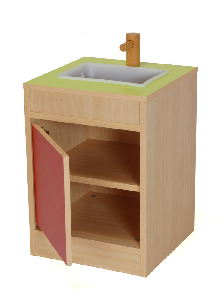 Sink - Hecho en 19 mm de espesor esquinas de PVC de haya melamina de DM 0,2 cm y 1,6 cm de espesor de melamina con esquinas redondeadas y pintado con tinta no tóxica. Traseros de 1 cm. Terminar en ambos lados. Puertas con 1,6 cm de espesor, bisagras y la seguridad antipinzamiento protección de los dedos.