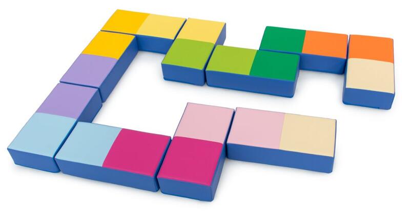 Compuesta de diez fichas de dominó con diez colores diferentes