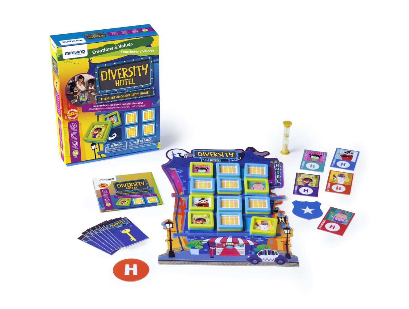 Hotel La diversidad es un juego de preguntas y respuestas para aprender sobre diferentes culturas a través de los personajes y los identificadores.