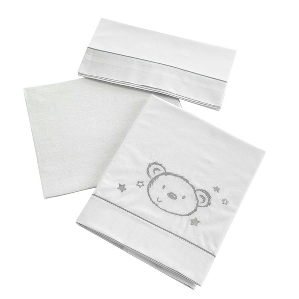 Conjunto de hojas consta de 3 partes a la cama 120 x 60 cm: hoja superior con bordado, lámina inferior ajustable blanco y fundas de almohada.