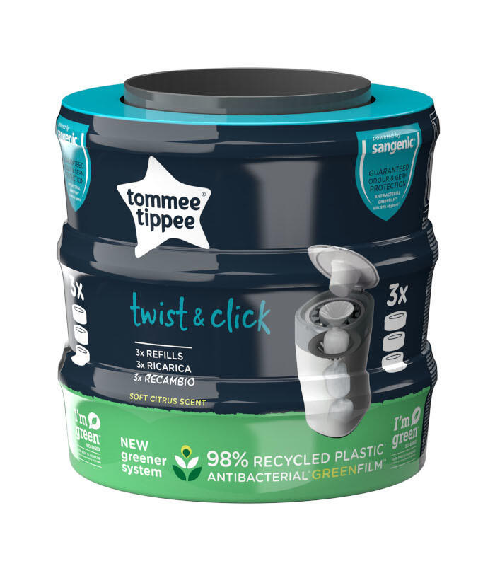 Los recambios Sangenic Tec de contenedores de pañales, con aroma cítrico, antibacterianos implican los pañales en una película de plástico y eliminan alrededor del 99% de los gérmenes. En pocas palabras la recarga de la parte superior del contenedor Sangenic Tec y está listo para usar. Cada recarga sirve para almacenar hasta 84 pañales (tamaño 1: 2-5kg).