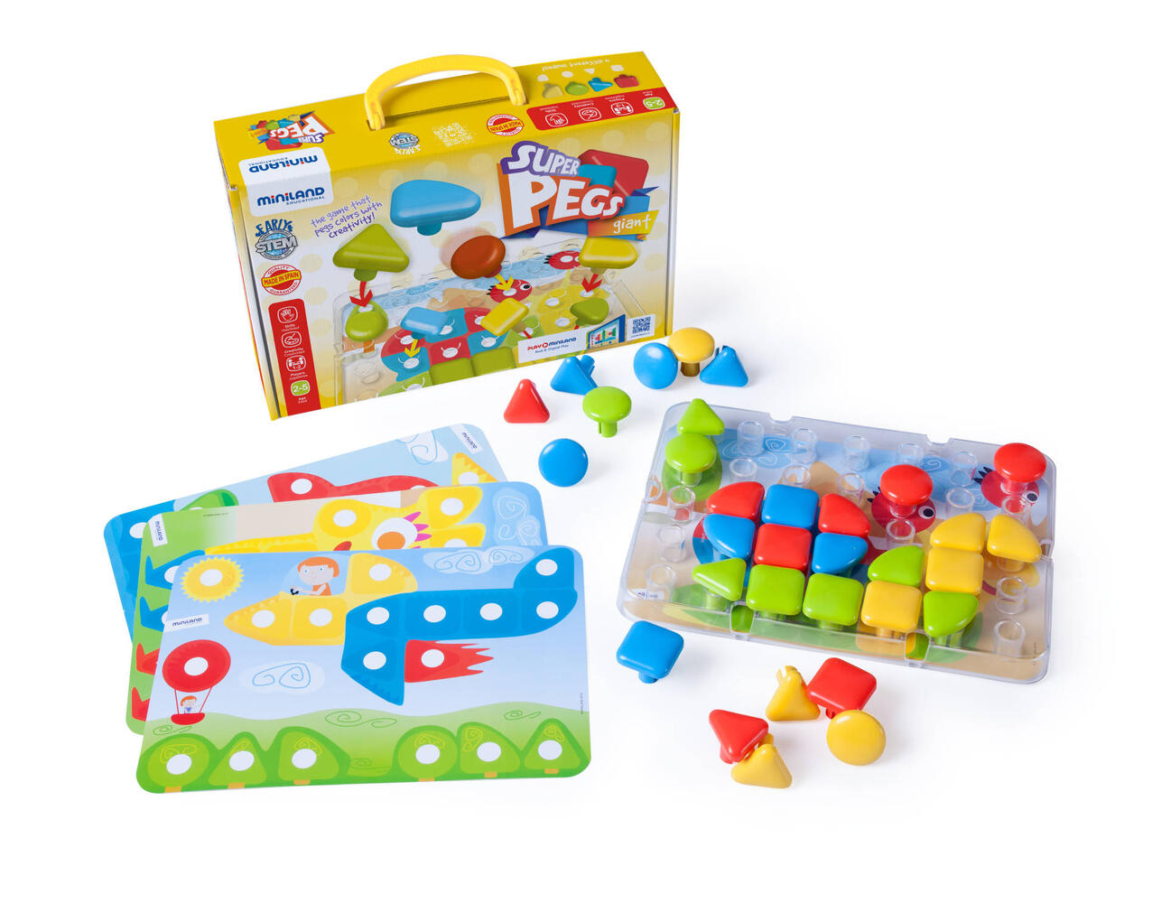 pasadores Super es la puesta a punto ideal para un primer contacto con las clavijas. Se trata de piezas de gran tamaño, ideal para las pequeñas manos de los niños, fácil de manejar y montar el tablón de anuncios.