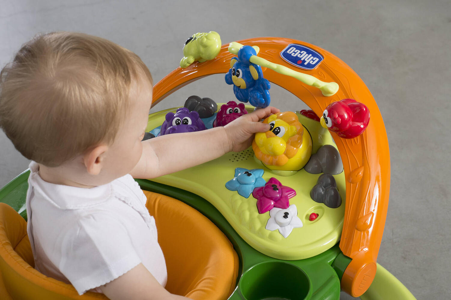 Nómada con barra de juguetes para descubrir el mundo a través de la diversión.