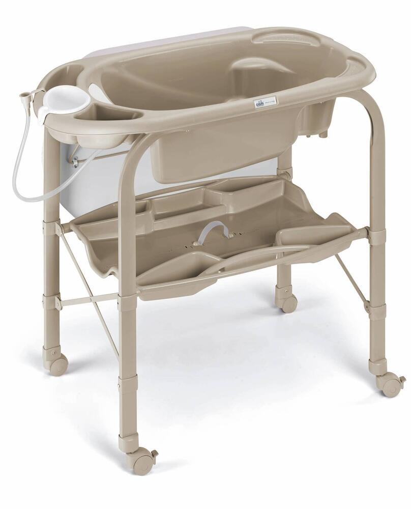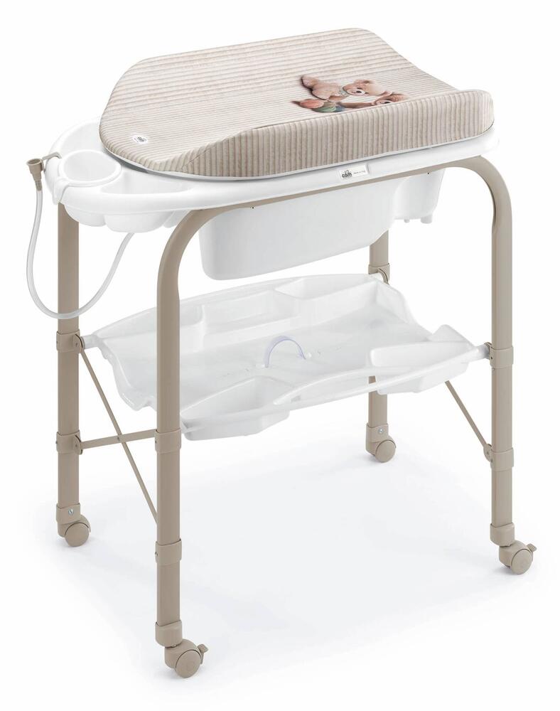 Cambiar pañales habitación con baño y barreras de protección para la seguridad. También tiene una estantería con separadores para que nunca tenga que estar lejos del bebé para recoger cualquier artículo. La bañera es anatómica, y ofrece soporte para artículos de tocador y un tubo de agua de escorrentía.