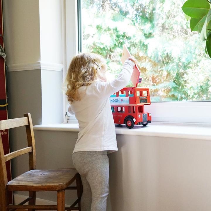 classique Bus anglais en bois avec des pneus en caoutchouc et le toit ouvrant. Comprend pilote. Âge recommandé: A partir de 3 ans Dimensions:... (ler mais)