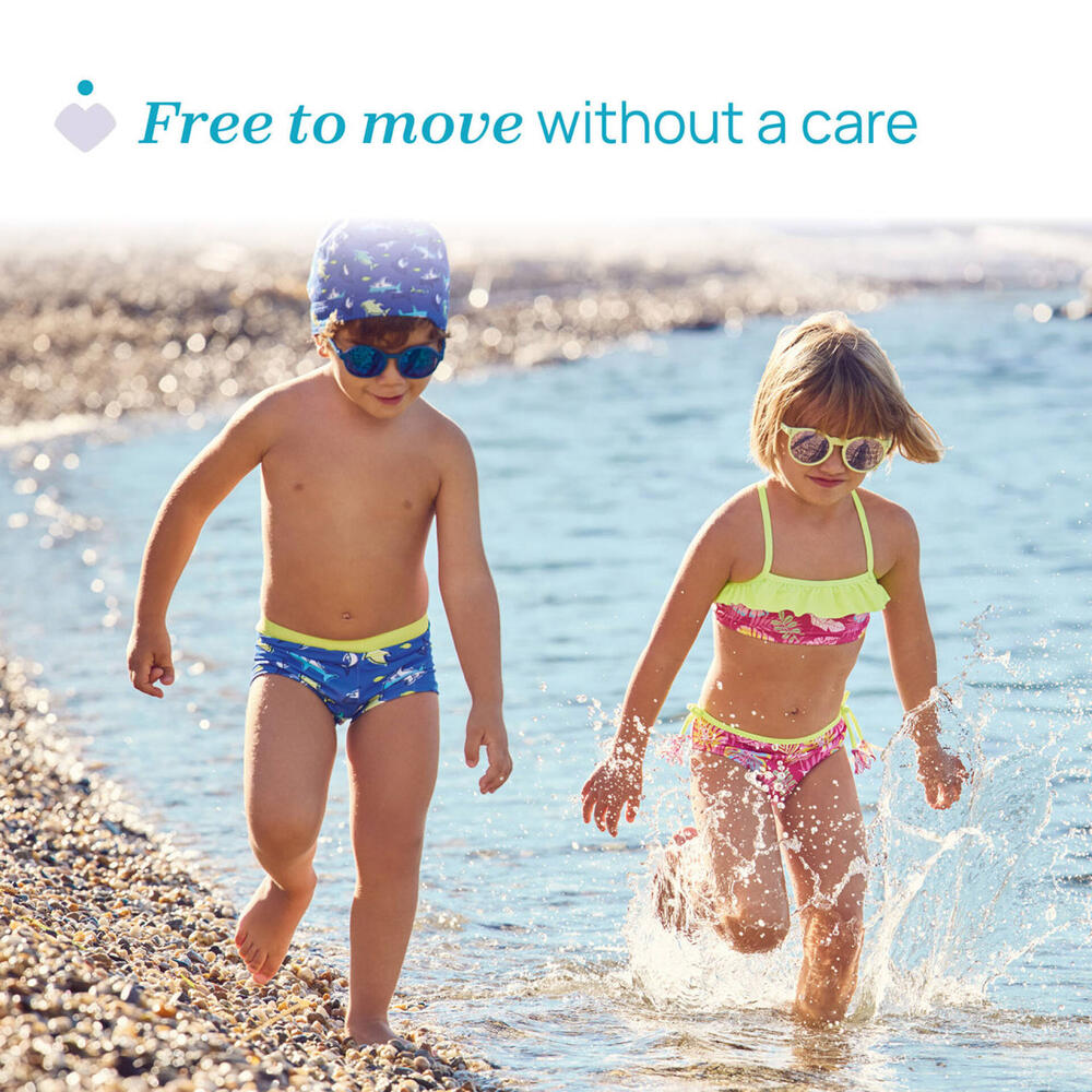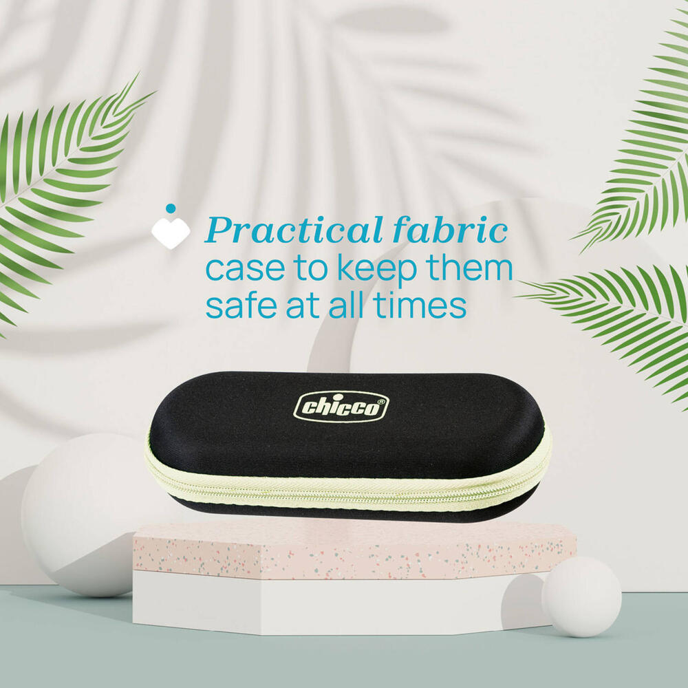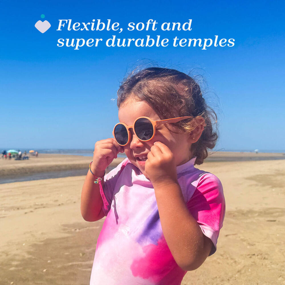 Pequenos passos, grandes sorrisos: os óculos de sol para maiores de 12 meses com tira de silicone mantêm-se seguros em todos os momentos, mesmo quando o seu filho começa a explorar.
