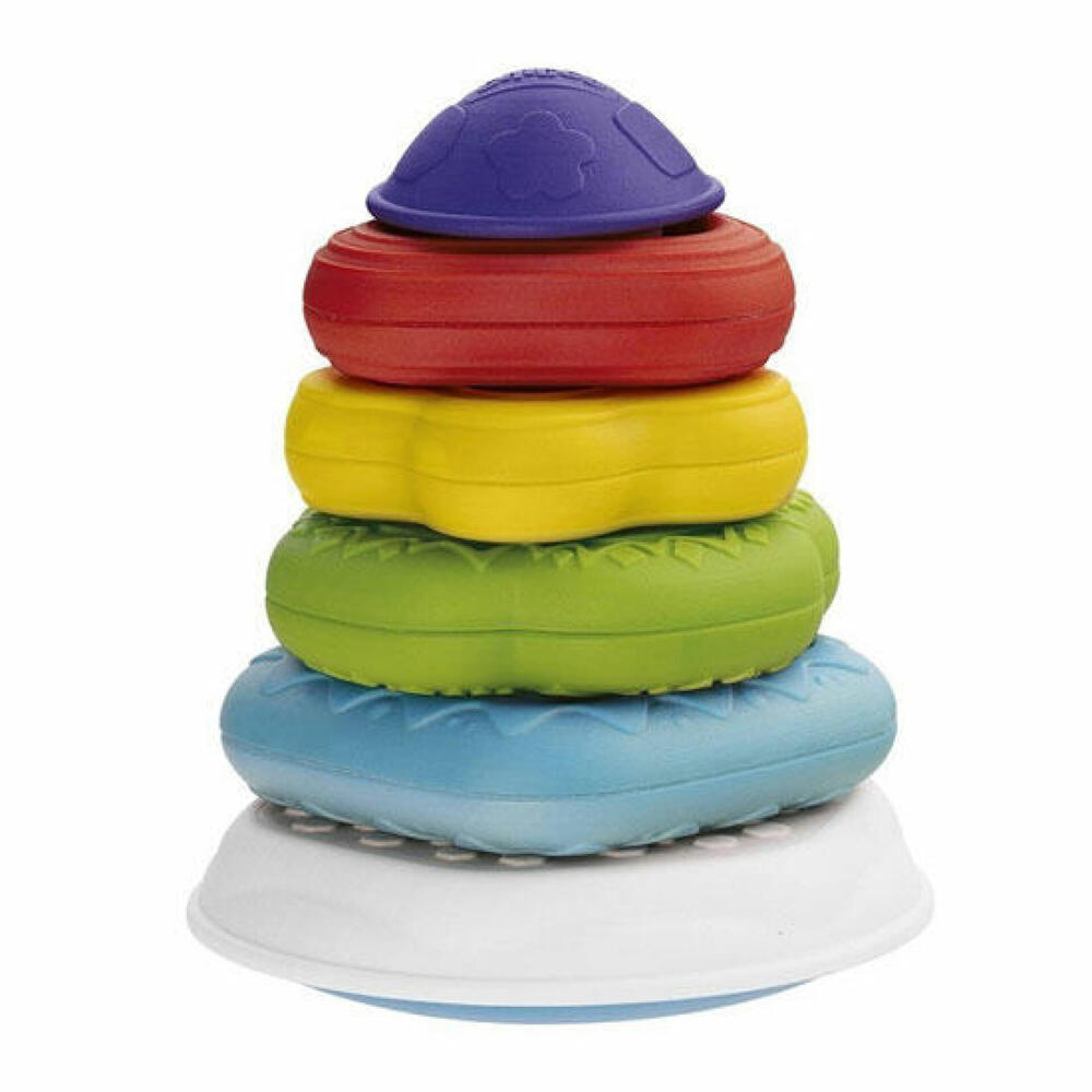 Ótimo brinquedo para os mais pequenos da casa se divertirem e aprenderem a encaixar objetos. Com esta fantástica Pirâmide de Anéis, você poderá jogar dois jogos e adquirir habilidades diferentes. Primeiro podem colocar as peças grandes em formato de quadrado, flor, estrela, triângulo e a peça lilás que coroa as demais, no mastro da pirâmide. Além disso, a base da pirâmide pode ser equilibrada como se fosse um “tentiese”.
