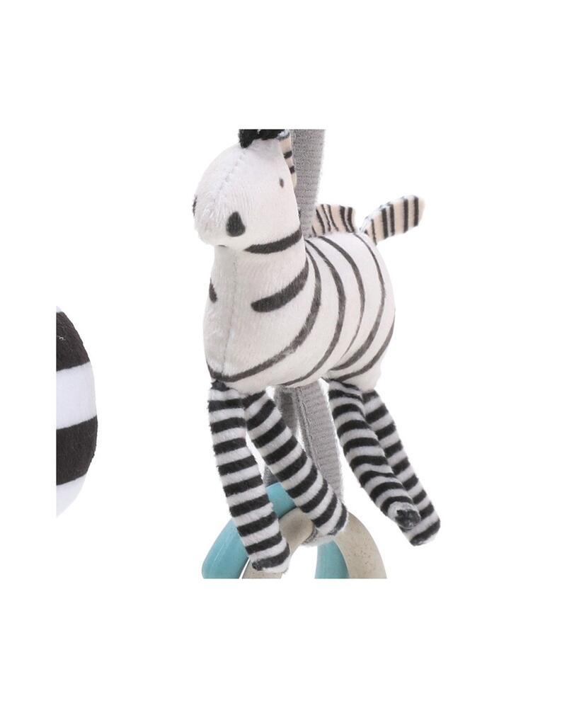 Espiral de atividades da zebra. Medidas máximas 40 cm. comprimento x 25 cm. Medida da zebra: 9 x 10,5 cm. Árvore de Natal: 8 x 5,5 cm. Espelho: Ø 6,5 x 3,5 cm.
