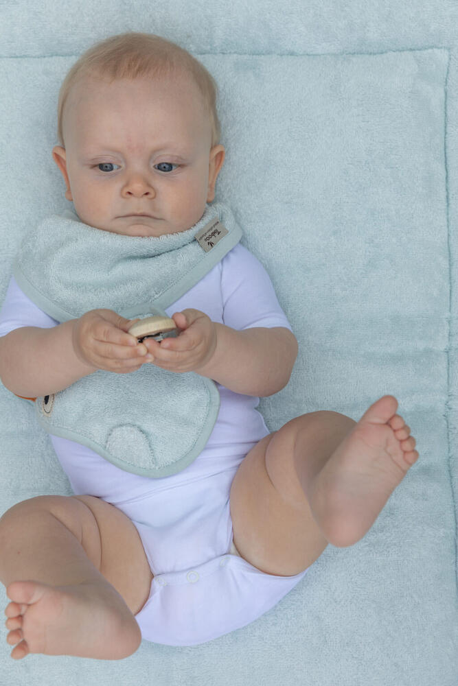 Feitas em 90% bambu e 10% poliéster, essas bandanas são macias ao toque e suaves para a pele delicada do bebê. Seu material respirável ajuda a manter o seu filho fresco e confortável o dia todo, sem irritações.