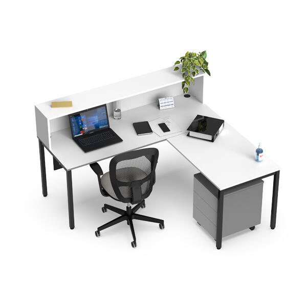 Mesa com alonga e alçado. Estrutura em tubo de aço 40x40x1,5 mm com acabamento a pintura epoxy. Tampos e alçado em melamina de 19 mm com orlas em PVC. Travamentos em tubo de aço 40x20x1,5 mm. 6 niveladores de apoio ao solo. Contém passa-cabos. Alonga aplicada à esquerda ou à direita. Possibilidade de colocação de alçado na alonga (não incluído - preço sob consulta). Possibilidade de incluir bloco de 3 gavetas rodado em melamina 19mm com orlas em PVC. (bloco de gavetas não incluído).