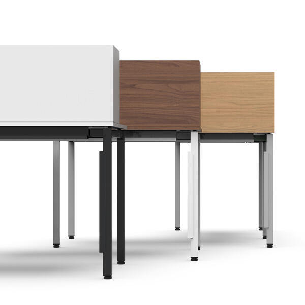 Mesa com alonga e alçado. Estrutura em tubo de aço 40x40x1,5 mm com acabamento a pintura epoxy. Tampos e alçado em melamina de 19 mm com orlas em PVC. Travamentos em tubo de... (ler mais)