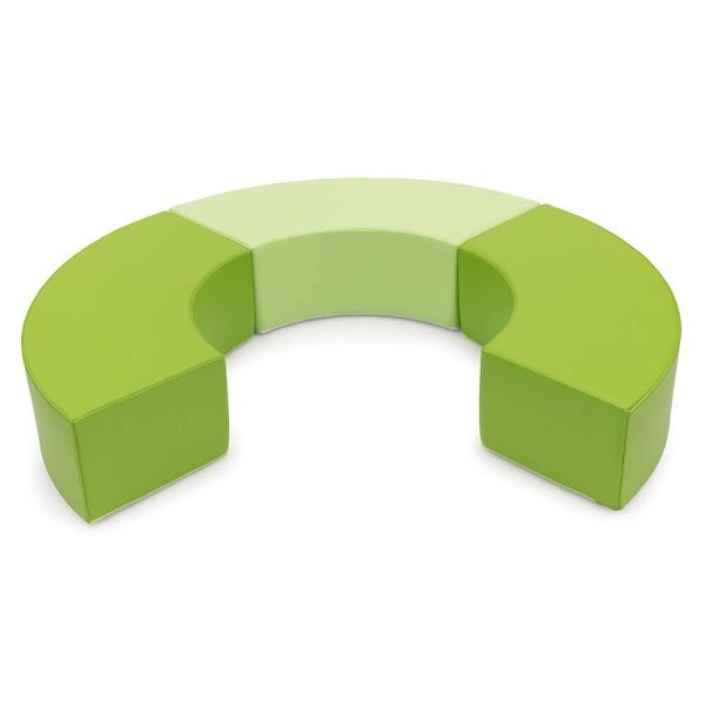 Peças fabricadas em espuma de poliuretano de 23kg/m3, revestidas com tela PVC impermeável, lavável, com tratamento ignífugo M2, isenta de ftalatos, ou de produtos nocivos para a saúde das crianças, respeitando as normas europeias de segurança.
