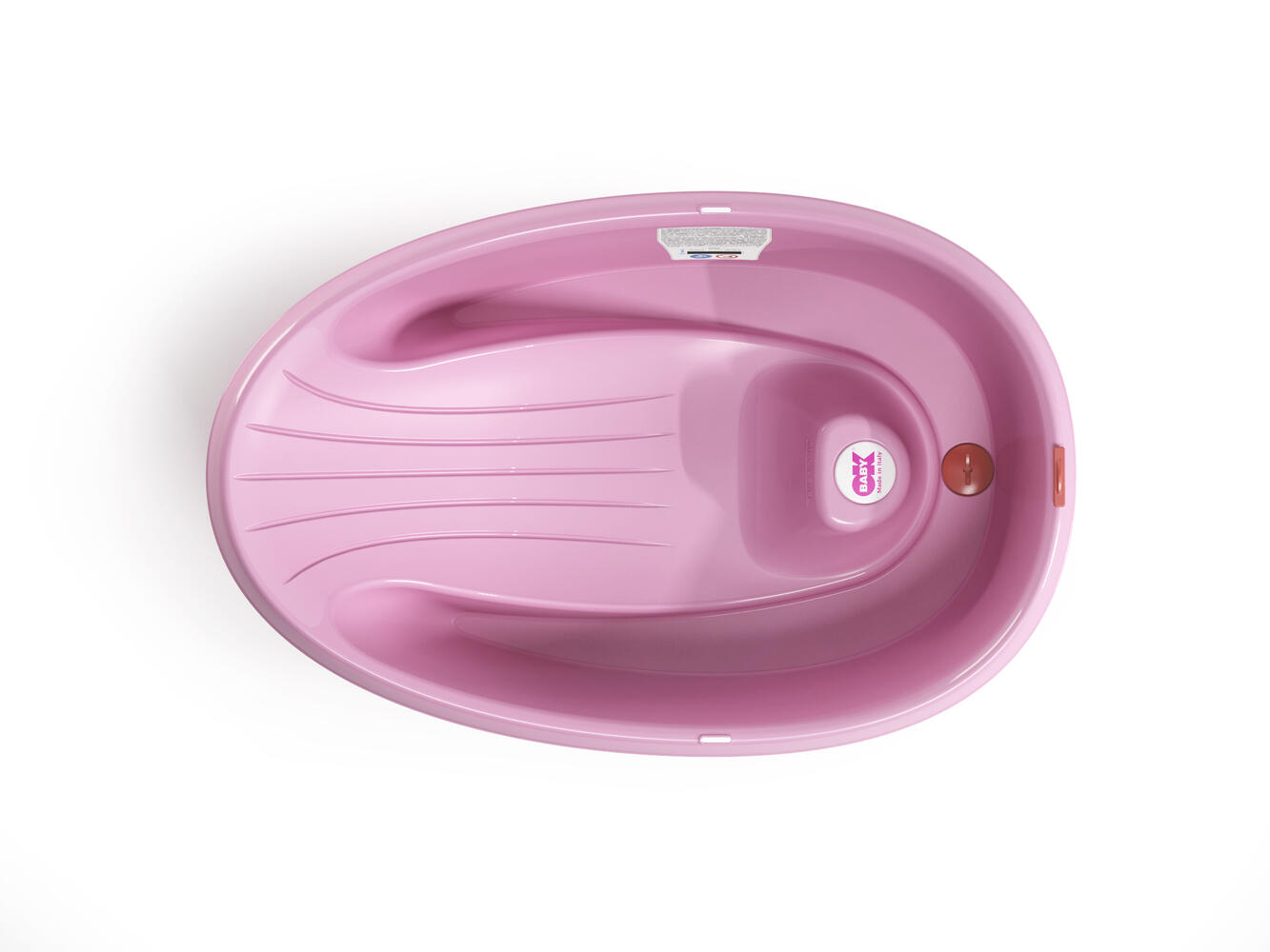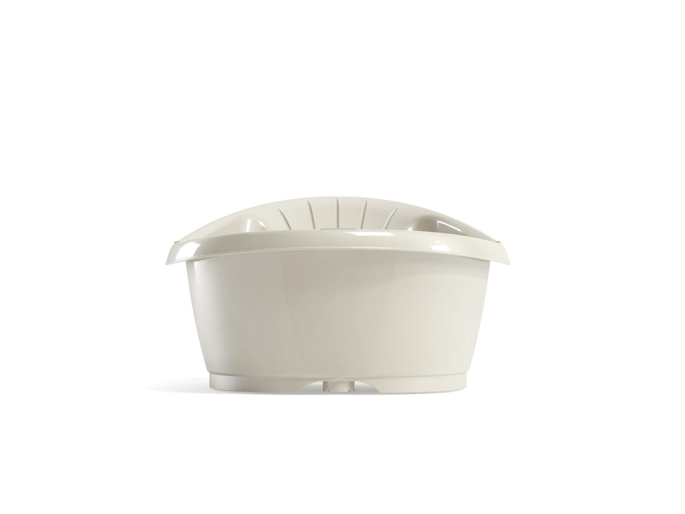 Banheira leve compacta e fácil de mover e armazenar. Com design ergonômico, equipada com ponto de apoio inguinal, base com almofadas de borracha antiderrapantes para maior conforto e estabilidade do bebé. Possui um termómetro embutido, indicador de nível de água recomendado e tampa para esvaziamento mais rápido da água.