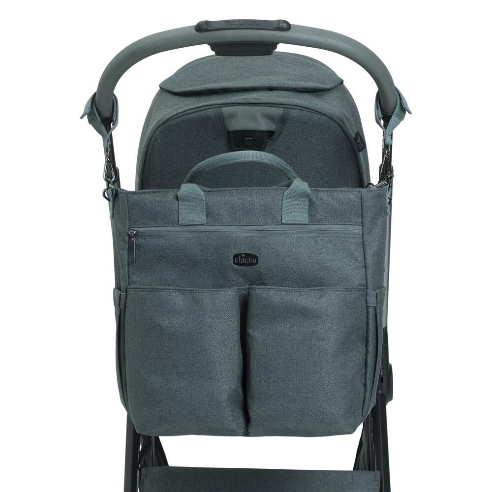 As alças amovíveis do carrinho de bebé transformam facilmente o saco de passeio num saco de ombro