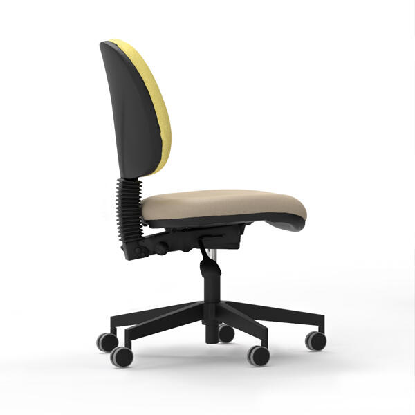 Cadeira giratória costa alta sem braços, com contacto permanente, base de 5 hastes em nylon.
