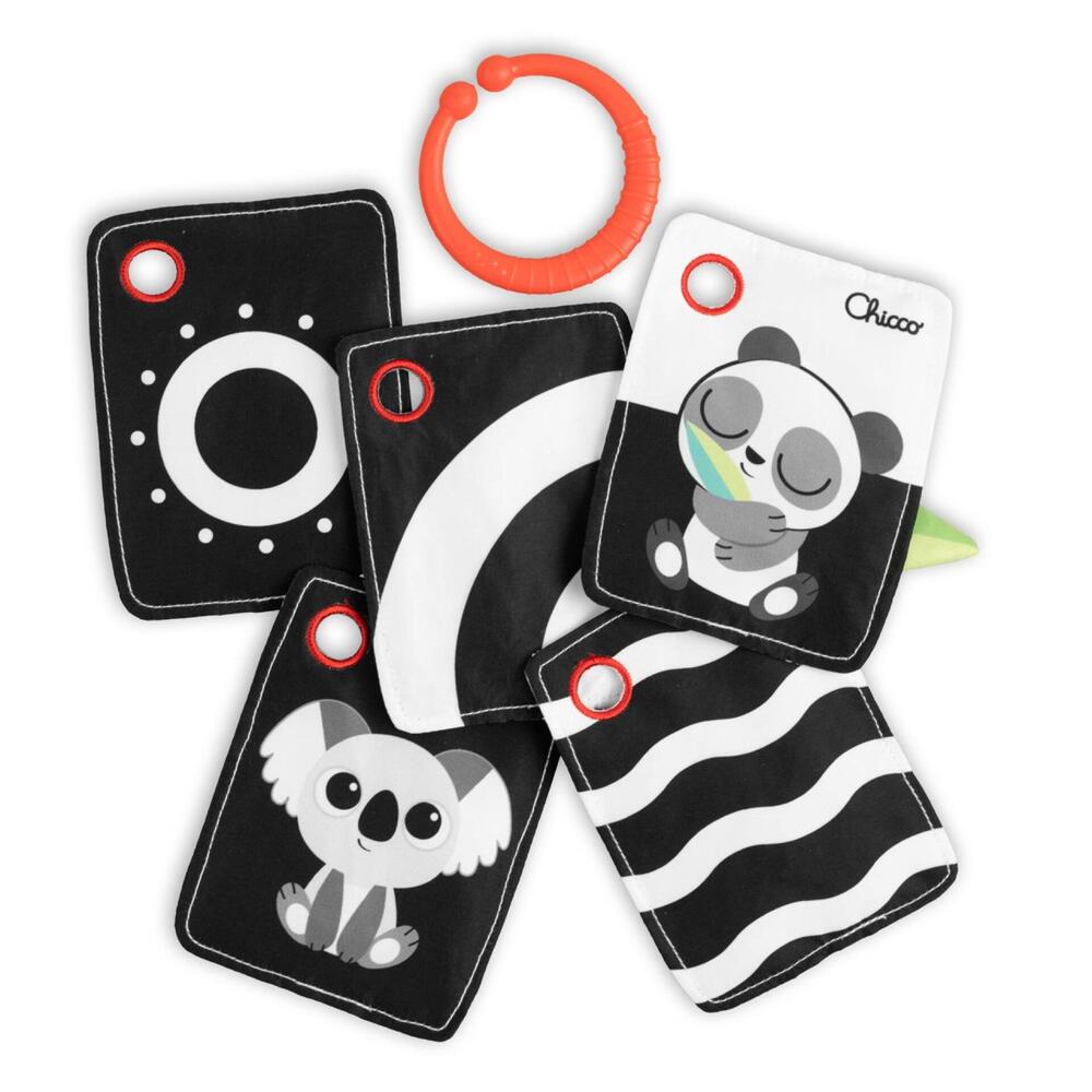 Cartões inspirados no método Montessori com dupla estimulação visual: imagens a preto e branco de alto contraste para apoiar o desenvolvimento visual; imagens coloridas para... (ler mais)