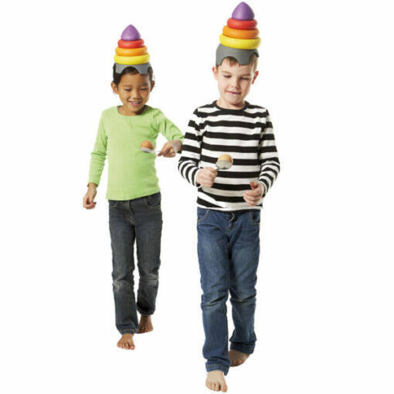 Este jogo é conhecido como Chapéu de Palhaço. Tente incentivar as crianças a realizar ações e jogos mantendo o equilíbrio.
