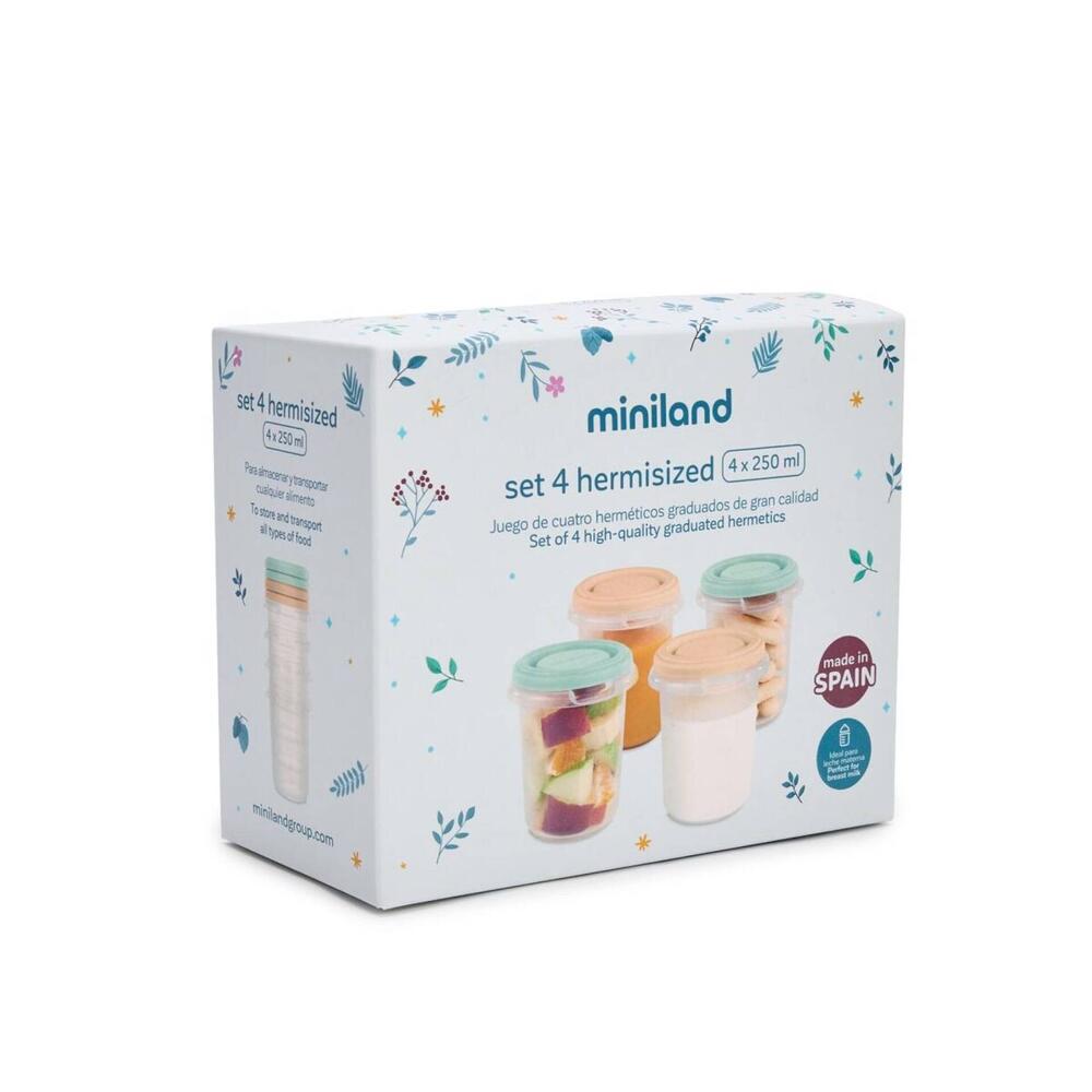 O conjunto de 4 recipientes herméticos de 250 ml é ideal para armazenar e organizar os biberões do seu bebé de forma prática e segura.