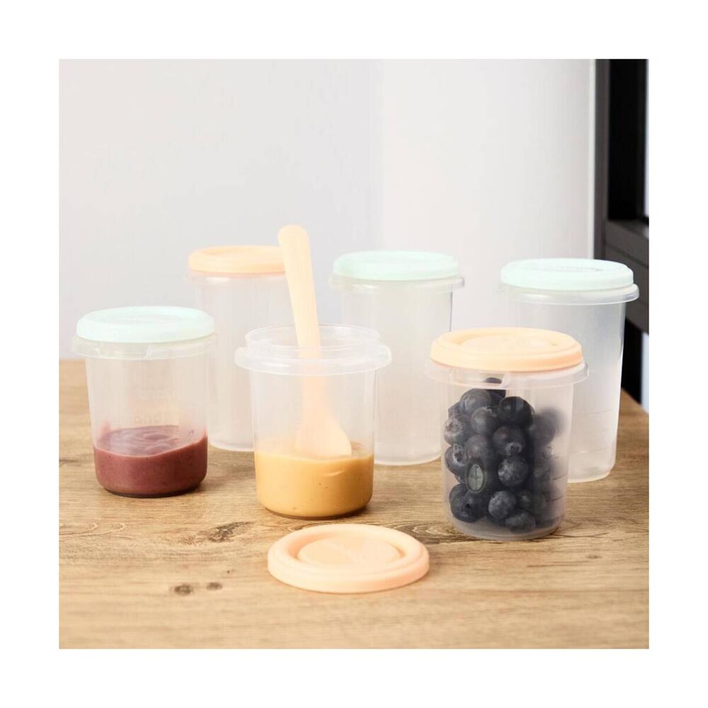 Este conjunto inclui dois recipientes de 200ml, dois de 250ml e dois de 330ml, oferecendo uma solução flexível para armazenar pequenas e grandes quantidades de alimentos. Cada recipiente possui marcações de medidas, permitindo monitorizar com precisão a alimentação do seu bebé.