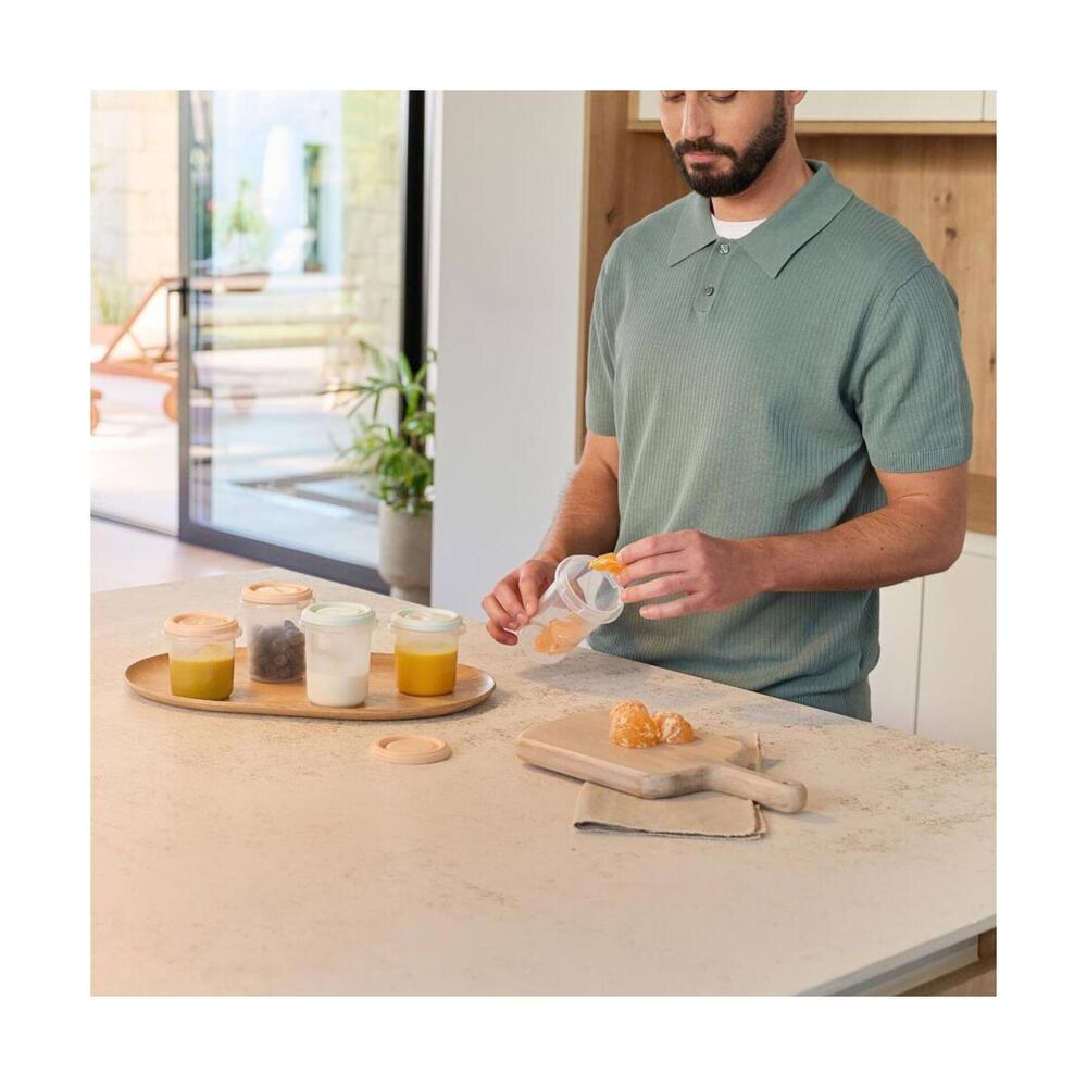Os recipientes herméticos são ideais para armazenar alimentos sólidos e leite materno, preservando as suas propriedades nutricionais, aroma e sabor. Permitem congelar e descongelar os alimentos em segurança, facilitando o planeamento das refeições.