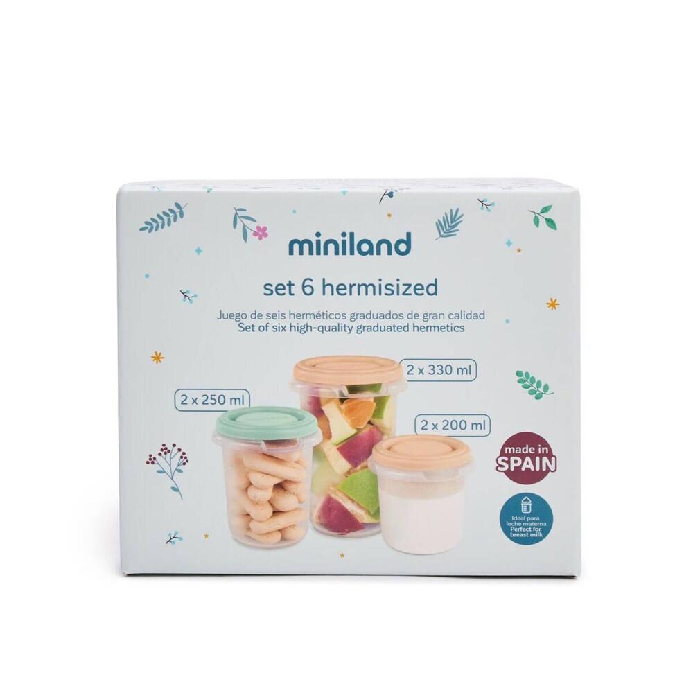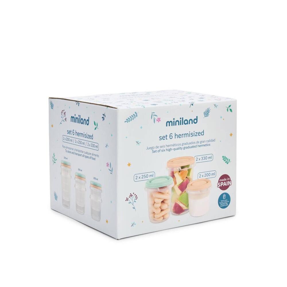 O Conjunto Hermético de 6 Peças da Miniland é uma coleção de recipientes herméticos concebidos para facilitar o armazenamento e a organização dos alimentos do seu bebé. Inclui seis recipientes em três tamanhos diferentes, concebidos para se adaptarem às várias fases e necessidades alimentares do seu bebé.