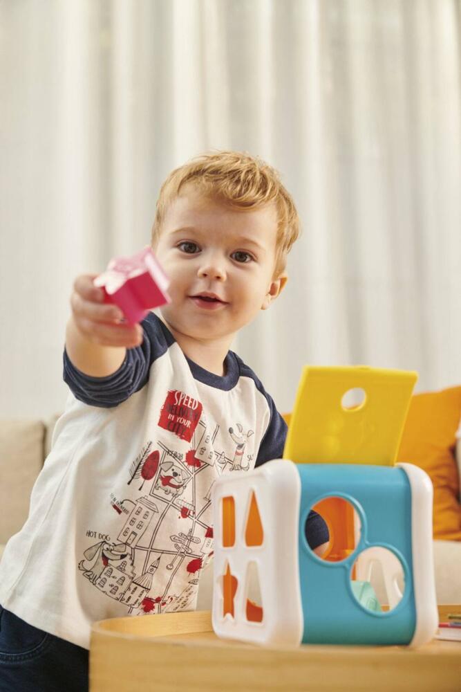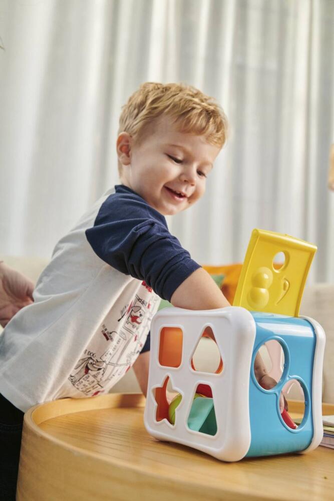 O nosso Cubo foi concebido para estimular as capacidades de raciocínio lógico da criança e a coordenação mão-olho, graças às atividades de encaixe de formas e martelo.