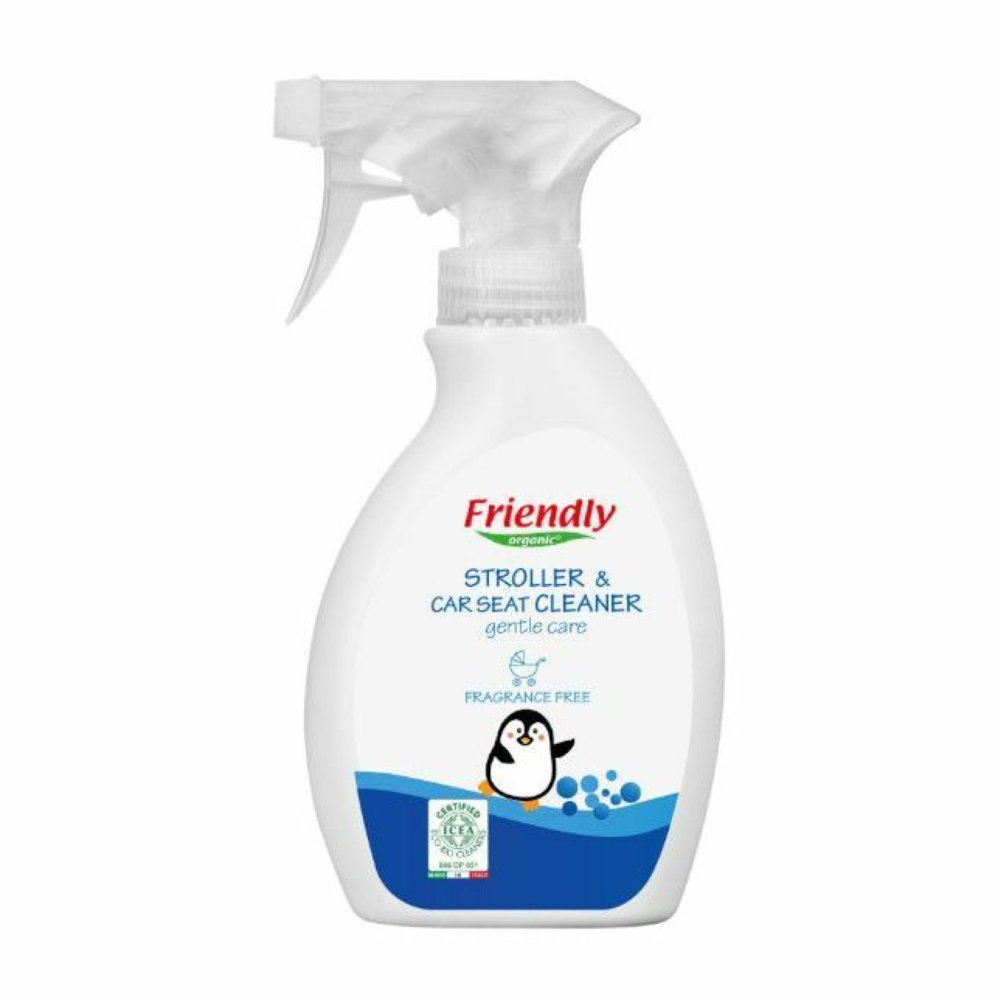 Detergente eficaz na limpeza e eliminação de manchas em cadeiras-auto e carrinhos de bebé.