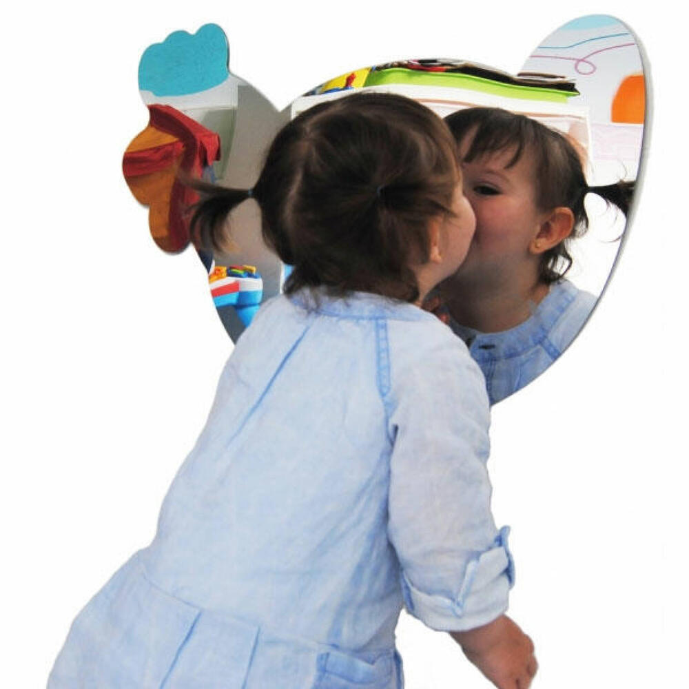 Animais espelho: Galinha é um espelho feito de plástico para colocar na parede. Mede: 50 cm x 65 cm e contém fitas adesivas para serem fixadas na parede.
