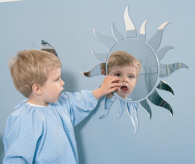A criança desenvolve a sua auto estima brincando com o espelho, observando-se com os seus companheiros.