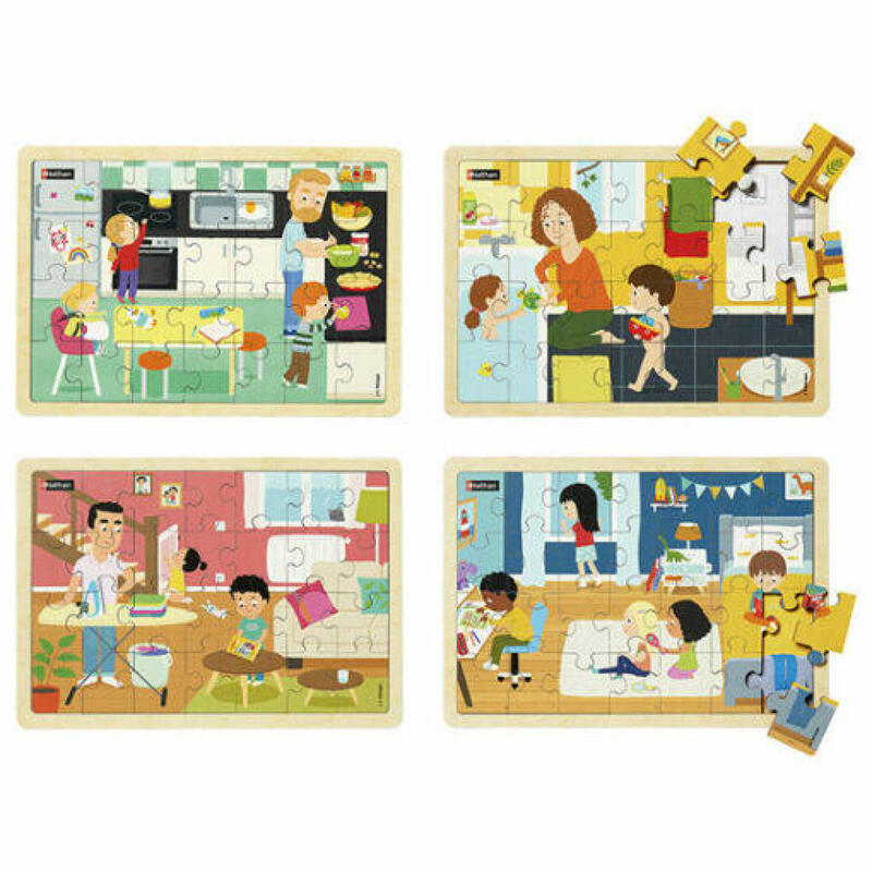 Quatro puzzles de madeira: Na cozinha + No quarto + No banheiro + Na sala Apresentação: Este puzzles podem ser montados com ou sem os modelos (destacáveis). 2... (ler mais)