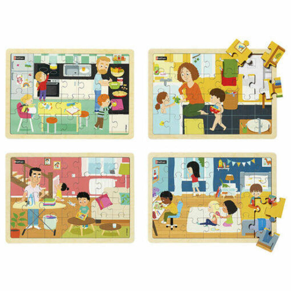 Quatro puzzles de madeira: Na cozinha + No quarto + No banheiro + Na sala