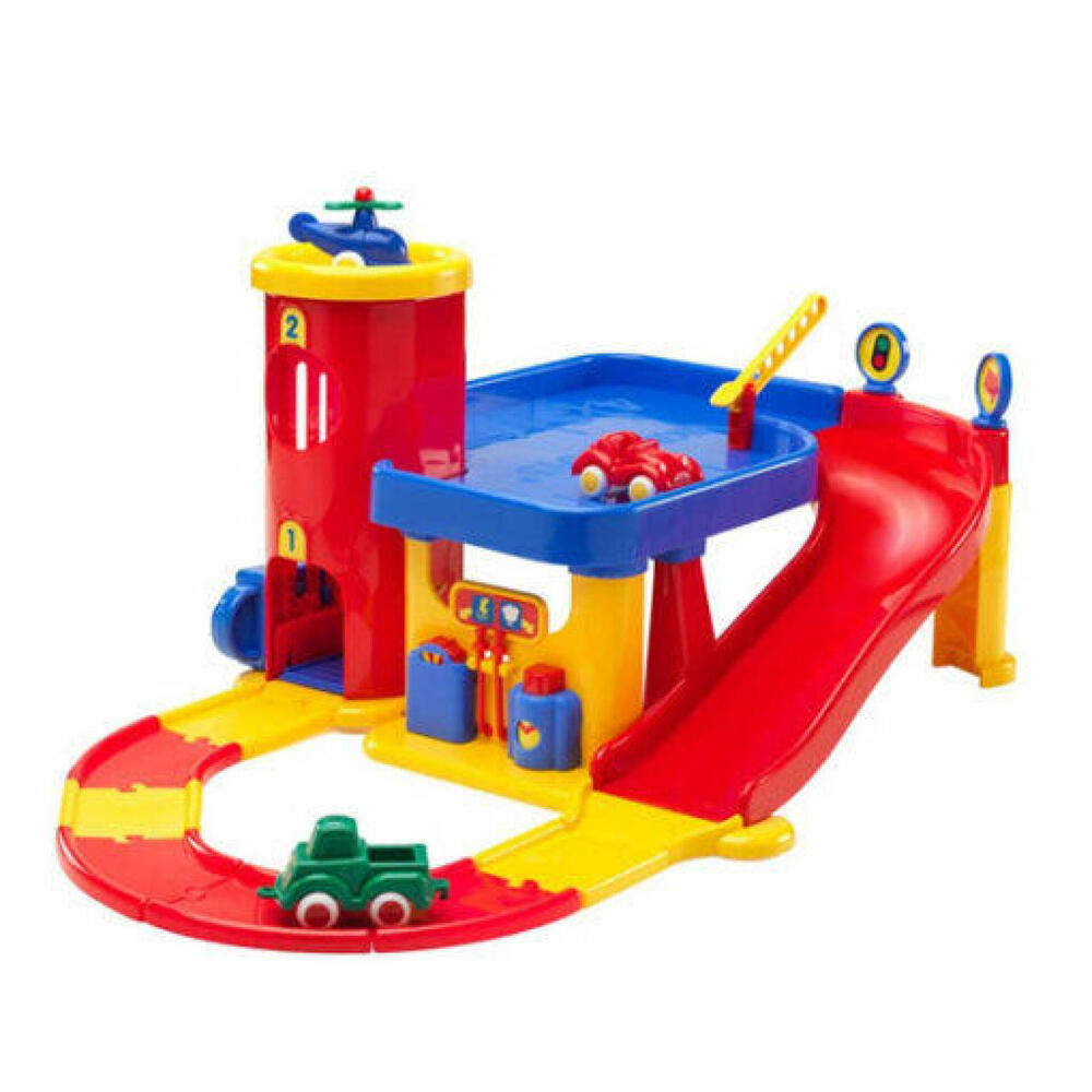 Garagem de dois andares com elevador e rampa sonora, heliporto e área de reabastecimento. Inclui 2 veículos + 1 helicóptero + pistas. Medidas do produto: 19 x 42 x 39 cm... (ler mais)