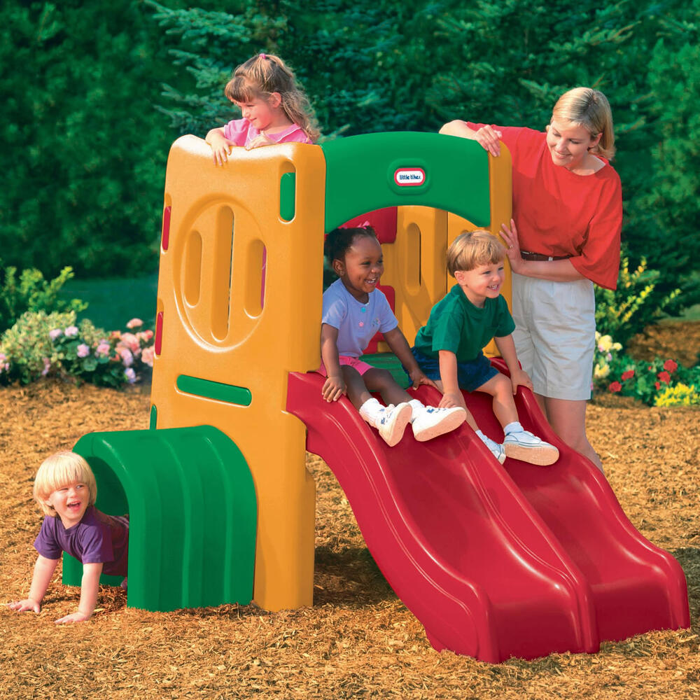 Este centro de atividades inclui dois escorregas ondulados. Dispõe de uma plataforma com um volante para aumentar a diversão dos mais pequenos. Os lados estão fechados... (ler mais)