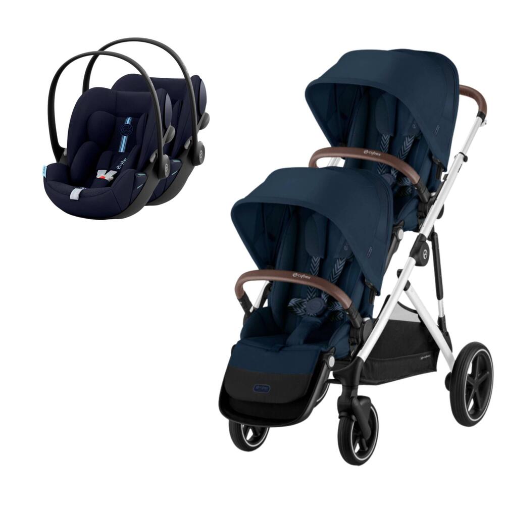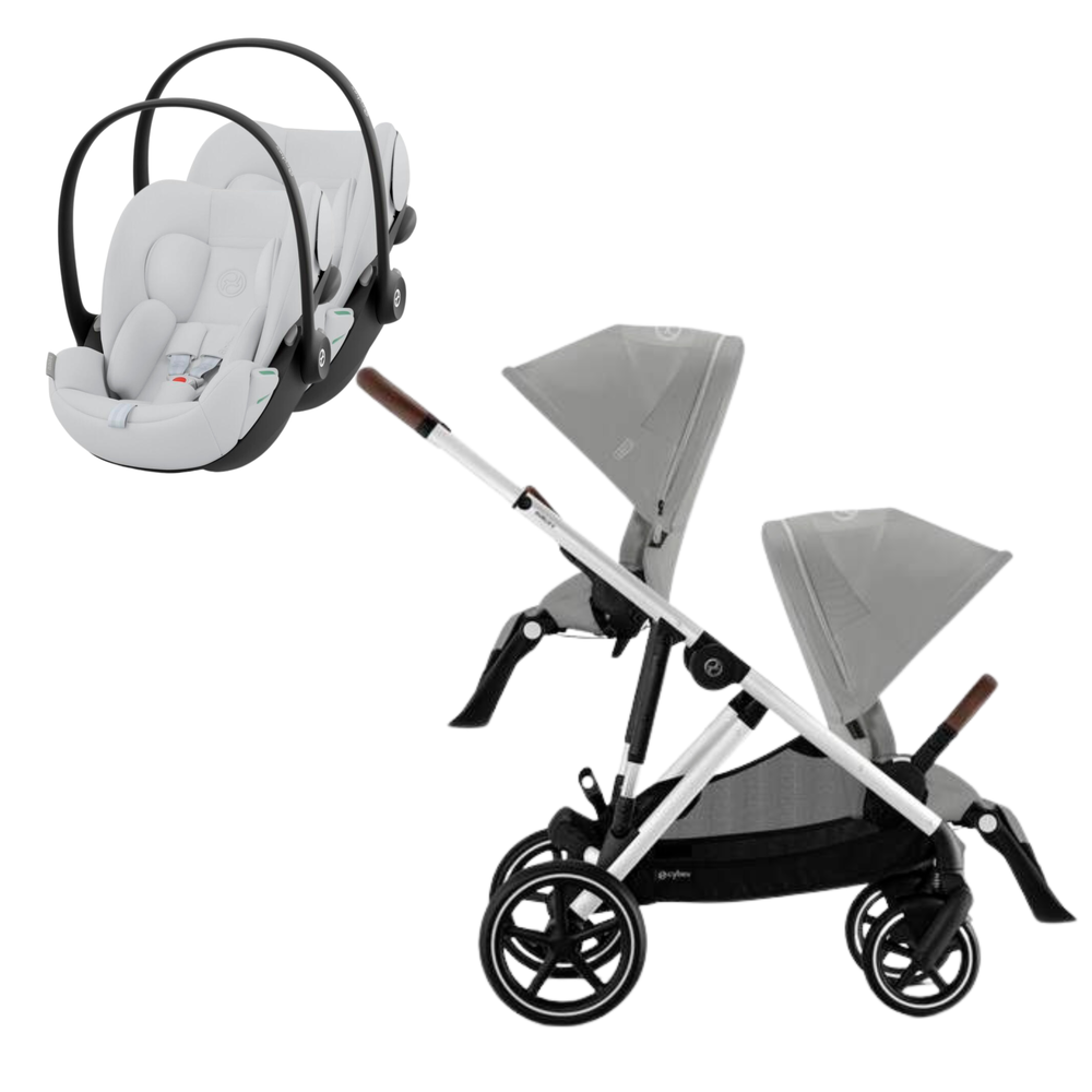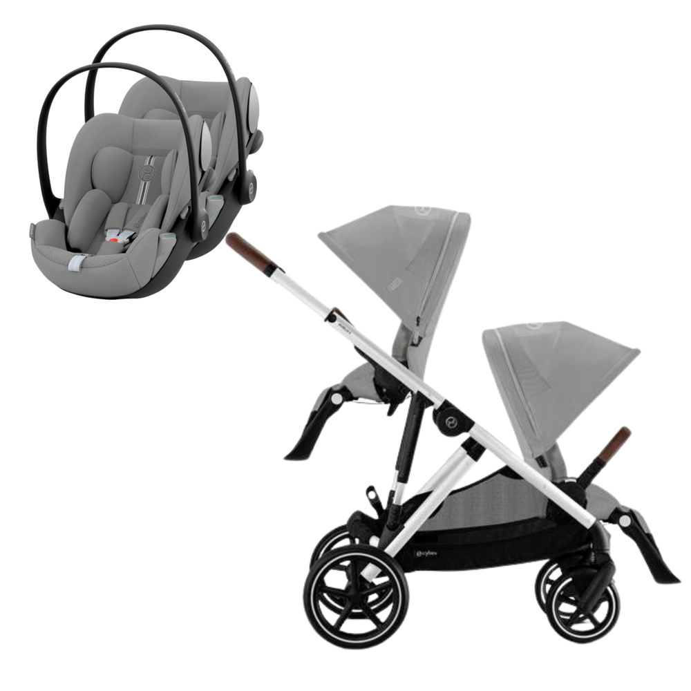 Conjunto composto por carrinho Gazelle S, segundo assento Gazelle S e duas cadeiras auto Cloud G i-Size. Permite uma solução à medida desde o nascimento até aproximadamente aos 4 anos.