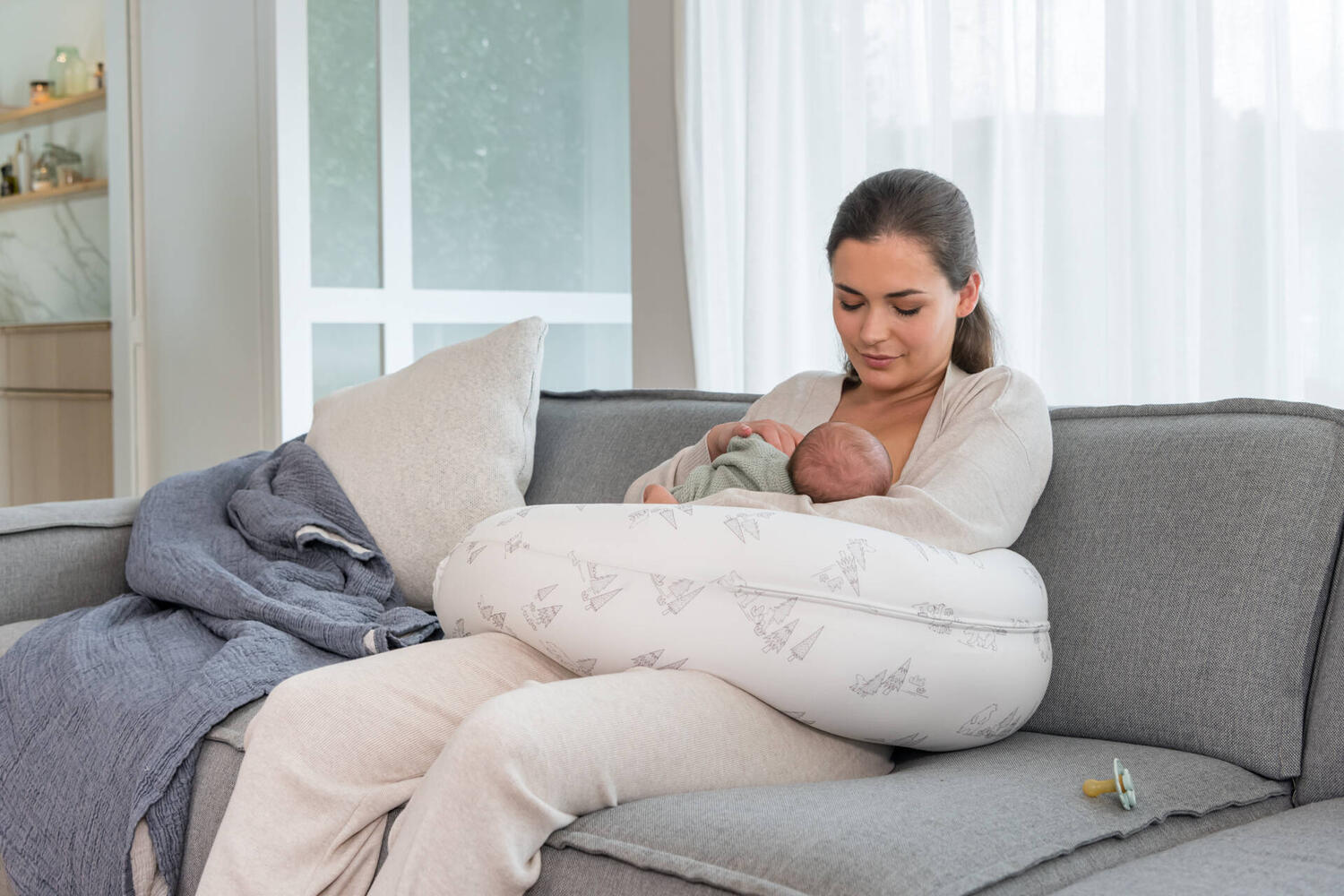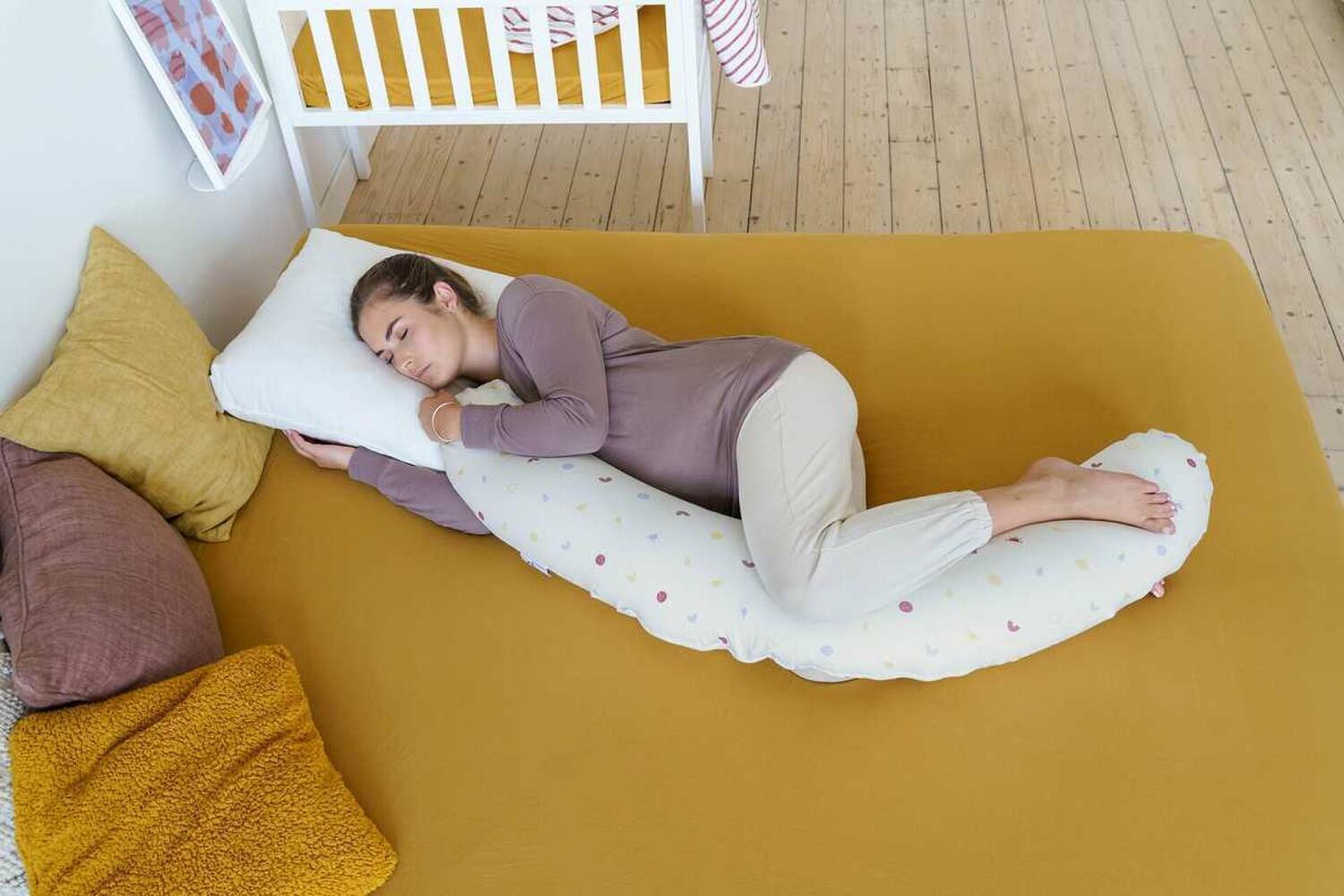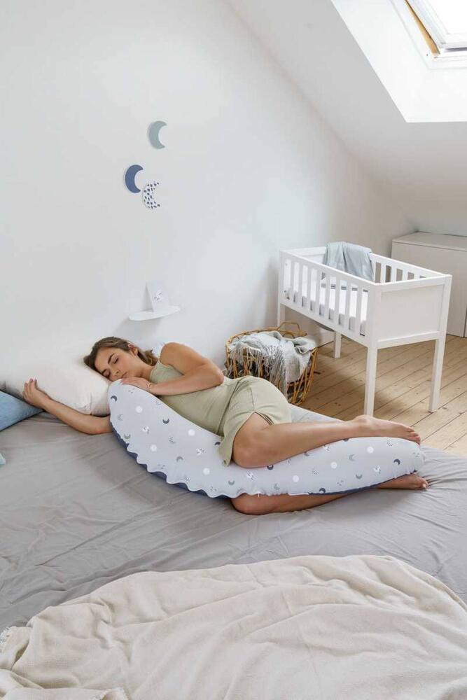 A almofada multifuncional Buddy oferece um conforto excecional, graças à combinação de micro-bolas finas e tecidos elásticos extra macios. Proporciona bem-estar e relaxamento aos pais e ao seu bebé.