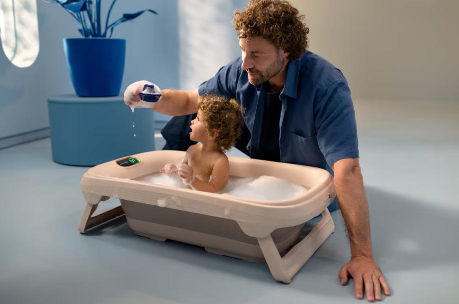 A banheira Indigo facilita o banho do seu bebé até aos 4 anos de idade. Deixe o seu bebé desfrutar de todos os salpicos, enquanto a nossa almofada suave antiderrapante e o termómetro HighSense o mantêm confortável e seguro. Uma vez terminada a hora do banho, a banheira Indigo fecha-se na horizontal para uma arrumação rápida e compacta.