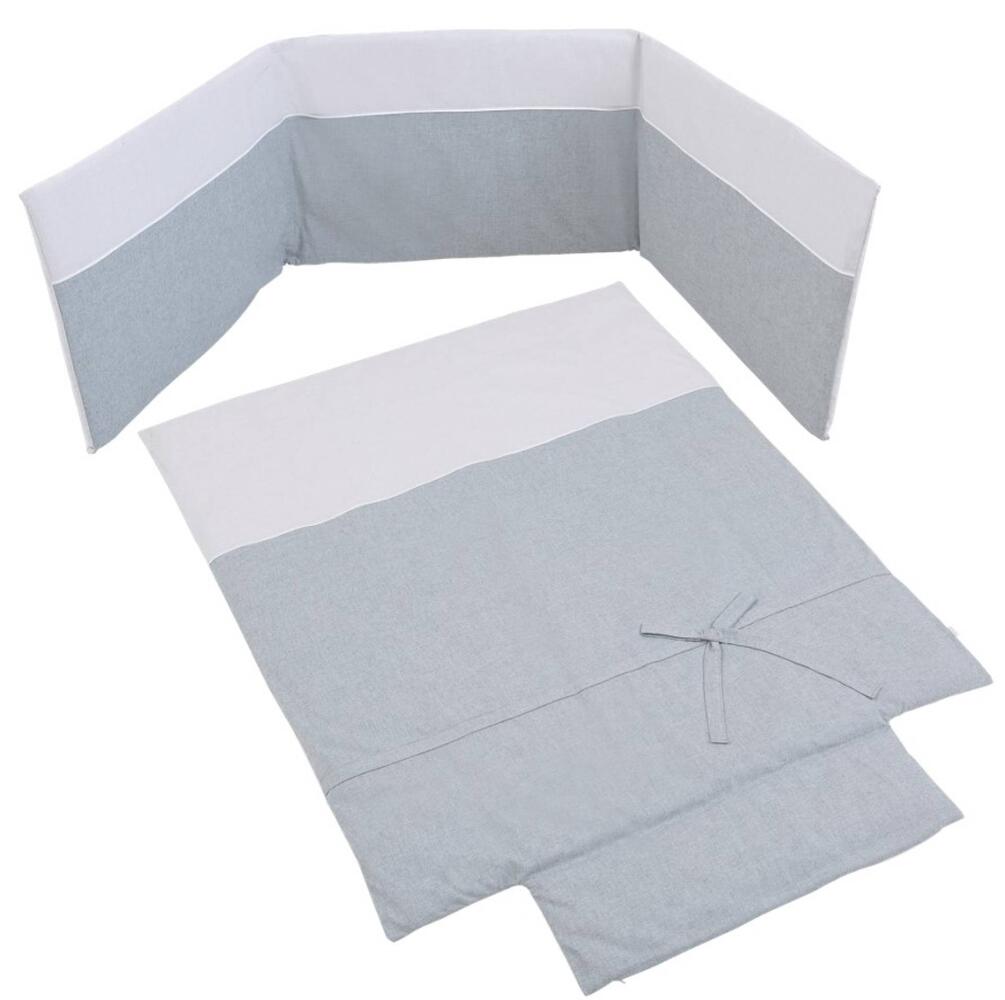 Este conjunto de têxteis da coleção Nature, fabricado em cambraia, um tecido fresco e respirável com textura subtil, é perfeito para dar um ar mais sofisticado ao quarto do seu bebé. Composto por um edredão e um protetor de grades alto para camas de 120x60 cm ou de 140x70 cm. Ambas as partes incluem enchimento e são removíveis, para facilitar a lavagem.