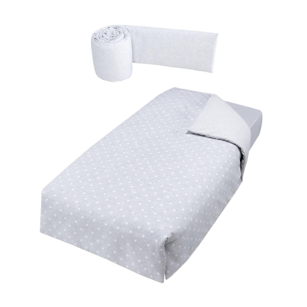 Conjunto composto por edredão e protetor de grades baixo para camas de grades de 120x60 cm ou 140x70 cm.
