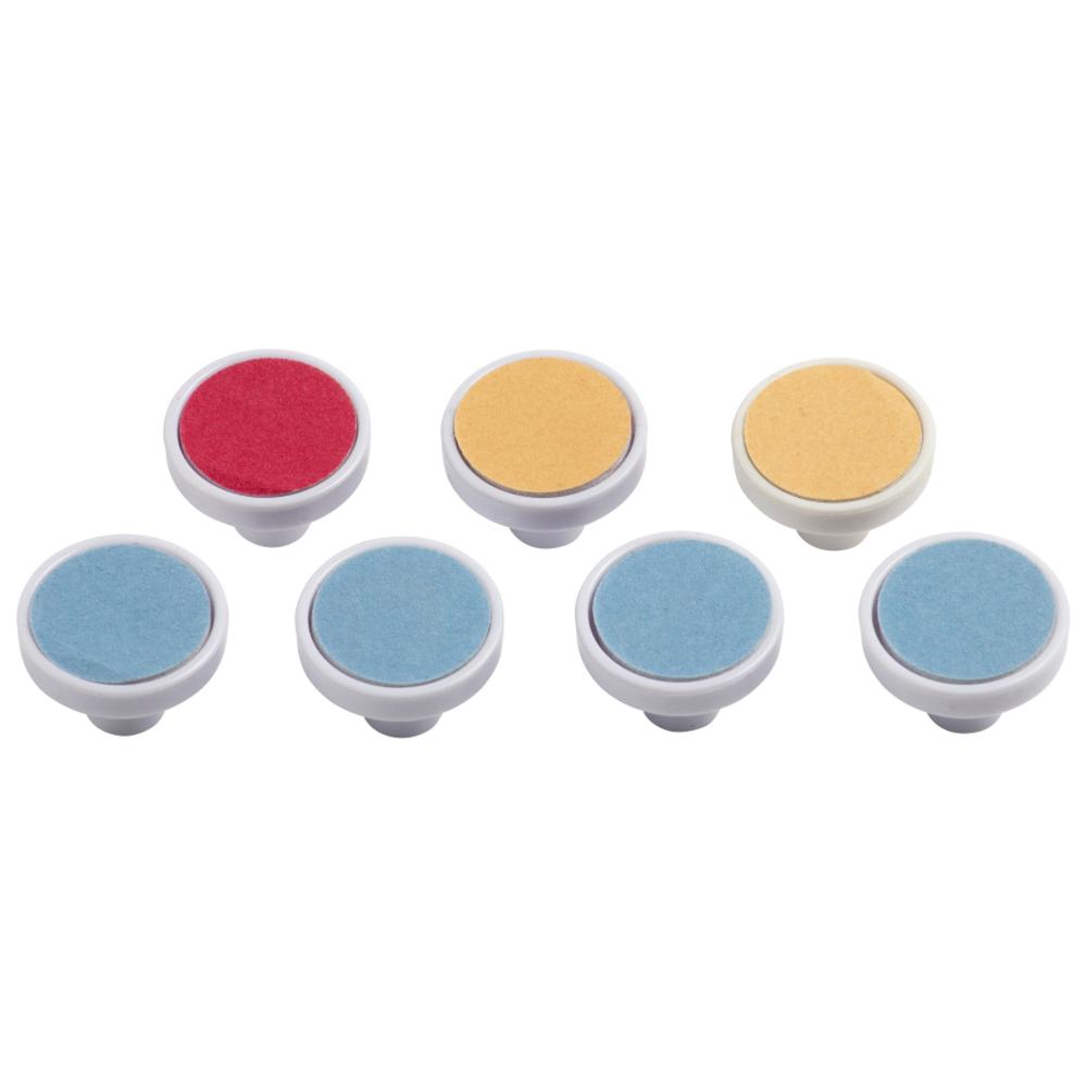 Estão incluídas 7 limas: 1 ultra-fina cor-de-rosa (0 - 3 meses), 2 finas cor de laranja (4 – 11 meses) e 4 médias azuis (> 1 ano). Substitua a lima quando a textura da sua superfície se tornar gasta.