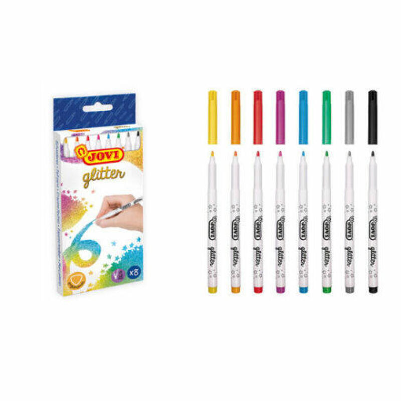 Marcadores brilhantes em estojo de 8 cores sortidas.