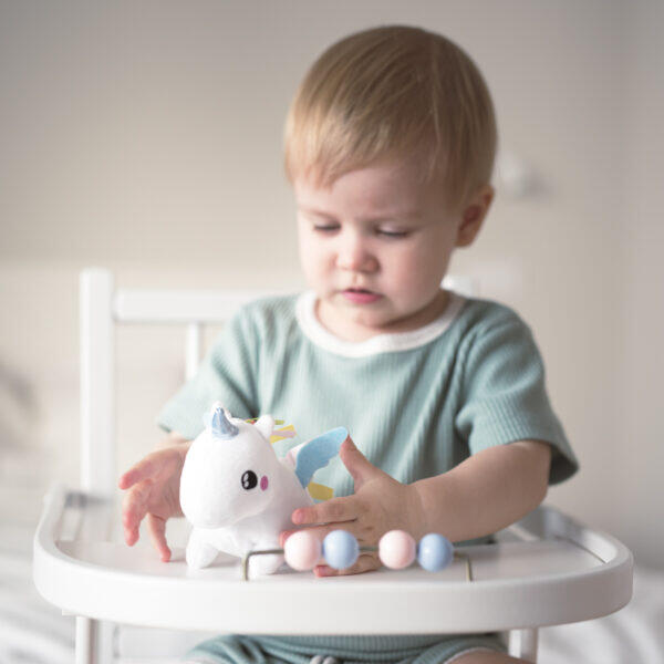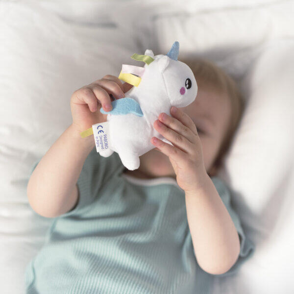 O Brinquedo de Pelúcia Unicórnio Luminoso Pabobo Mini é o companheiro ideal para a hora de dormir dos mais pequenos. Com sensor de movimento integrado, basta agitar e ele ilumina com uma luz suave e reconfortante, perfeita para acompanhar seu bebê sem superaquecer, mesmo debaixo das cobertas.