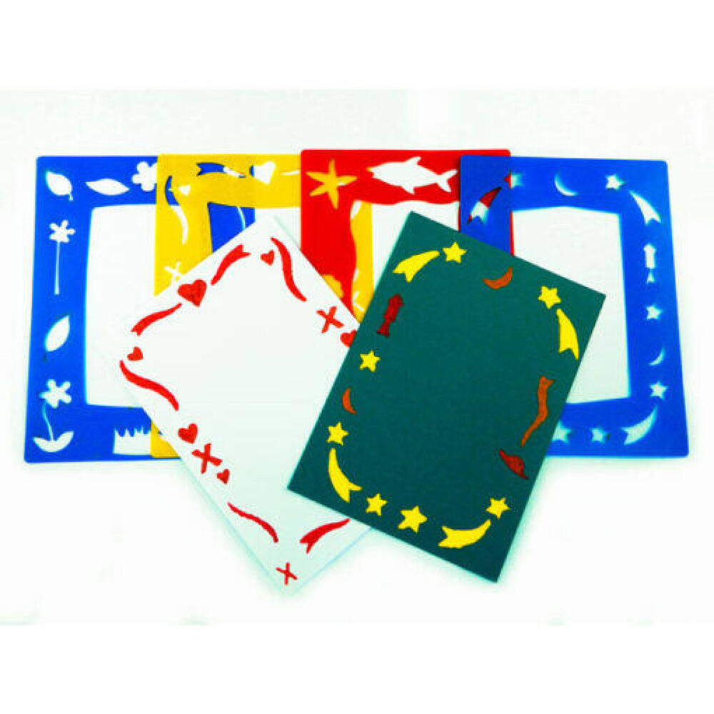 Pacote de 4 estênceis de borda tamanho A4: vida marinha, flores e folhas, corações de amor e fogos de artifício. (ler mais)