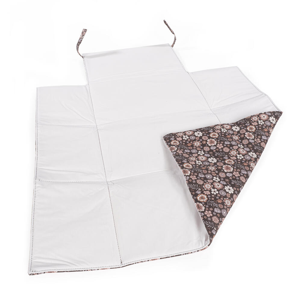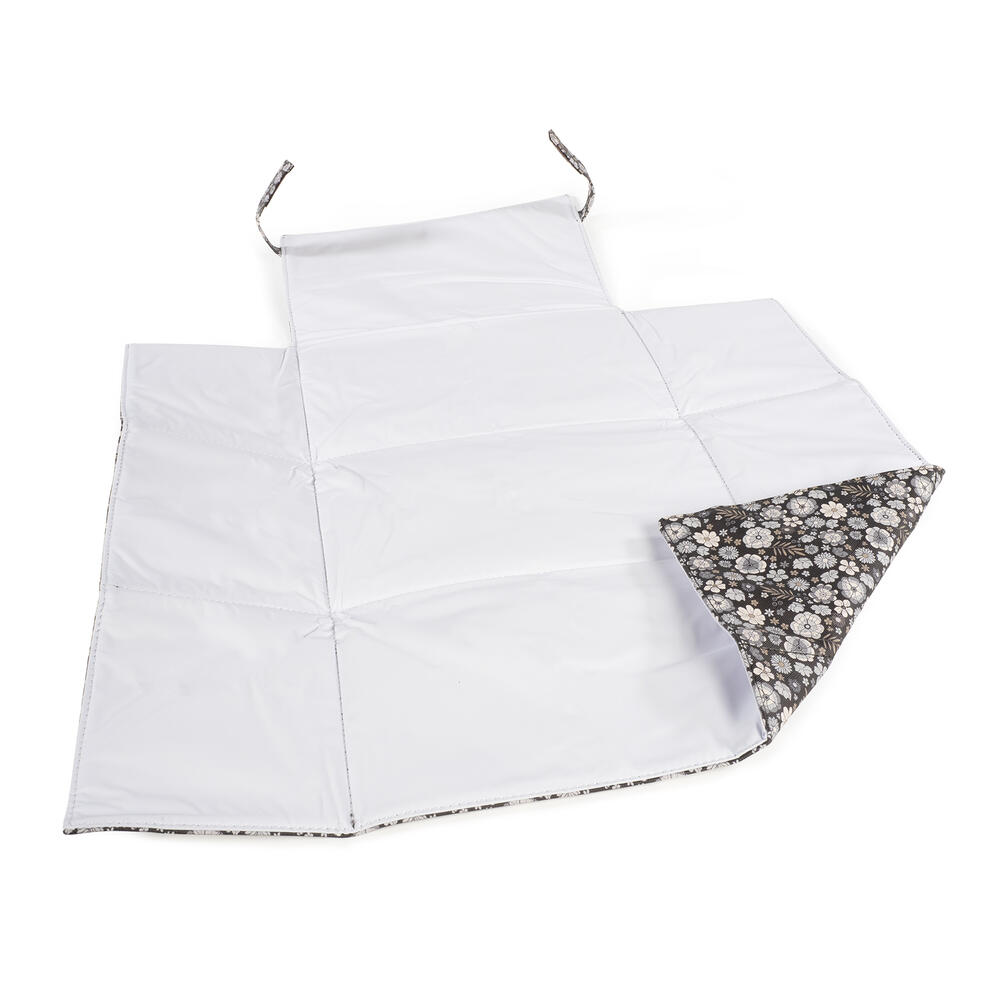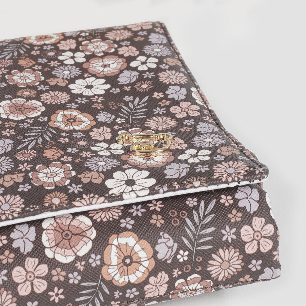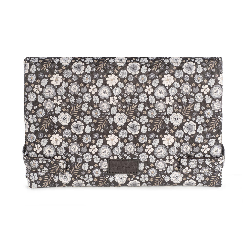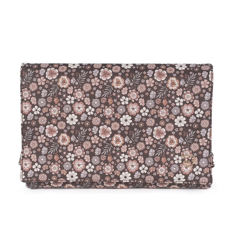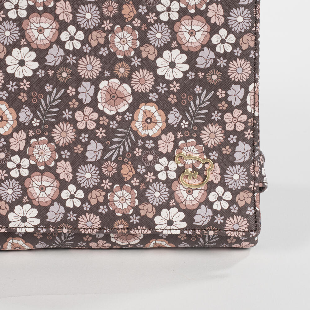 O muda-fraldas em polipele para bebé Blossom impresso com um delicado estampado de flores é um modelo muito cómodo, prático e fácil de transportar. Com um padrão especialmente idealizado para utilizar quando necessitar de mudar o seu bebé. Fabricado com polipele resistente e suave, tornando-se mais fácil de transportar para todos os lugares. Com um design tão elegante quanto funcional, porque apresenta-se num formato estilo envelope para ser portátil. O trocador de bebé possui um forro interior acolchoado e impermeável para facilitar a limpeza após a utilização e evitar odores que se acumulem no seu interior. Possui fitas com feltro para fechar e manter o muda-fraldas fechado e assim reduzir o seu espaço para carregá-lo dentro da bolsa de maternidade.