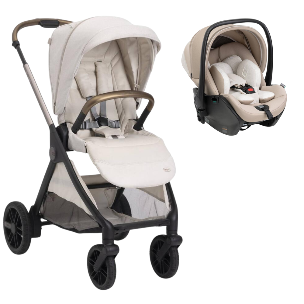 Conjunto composto pelo carrinho Bellagio 2.0 e First Seat Recline i-size.