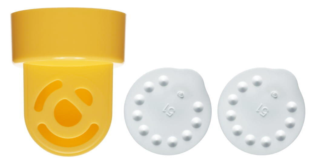 Conjunto composto por peças de substituição fundamentais para o correto funcionamento dos extratores de leite da Medela.