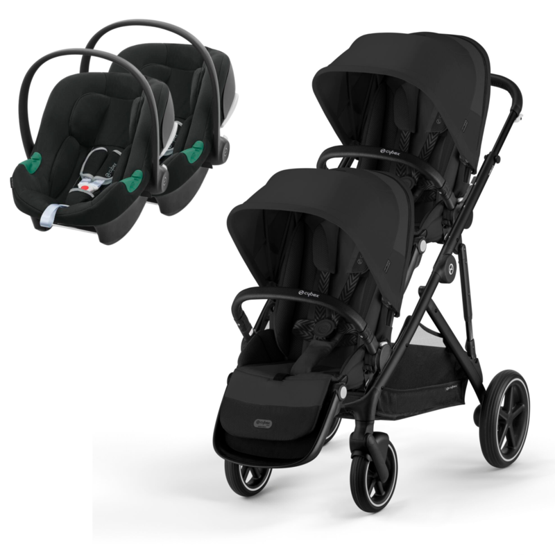 Conjunto composto por carrinho Gazelle S, segundo assento Gazelle S e duas cadeiras auto Aton B2. Permite uma solução à medida desde o nascimento até aproximadamente aos 4 anos.